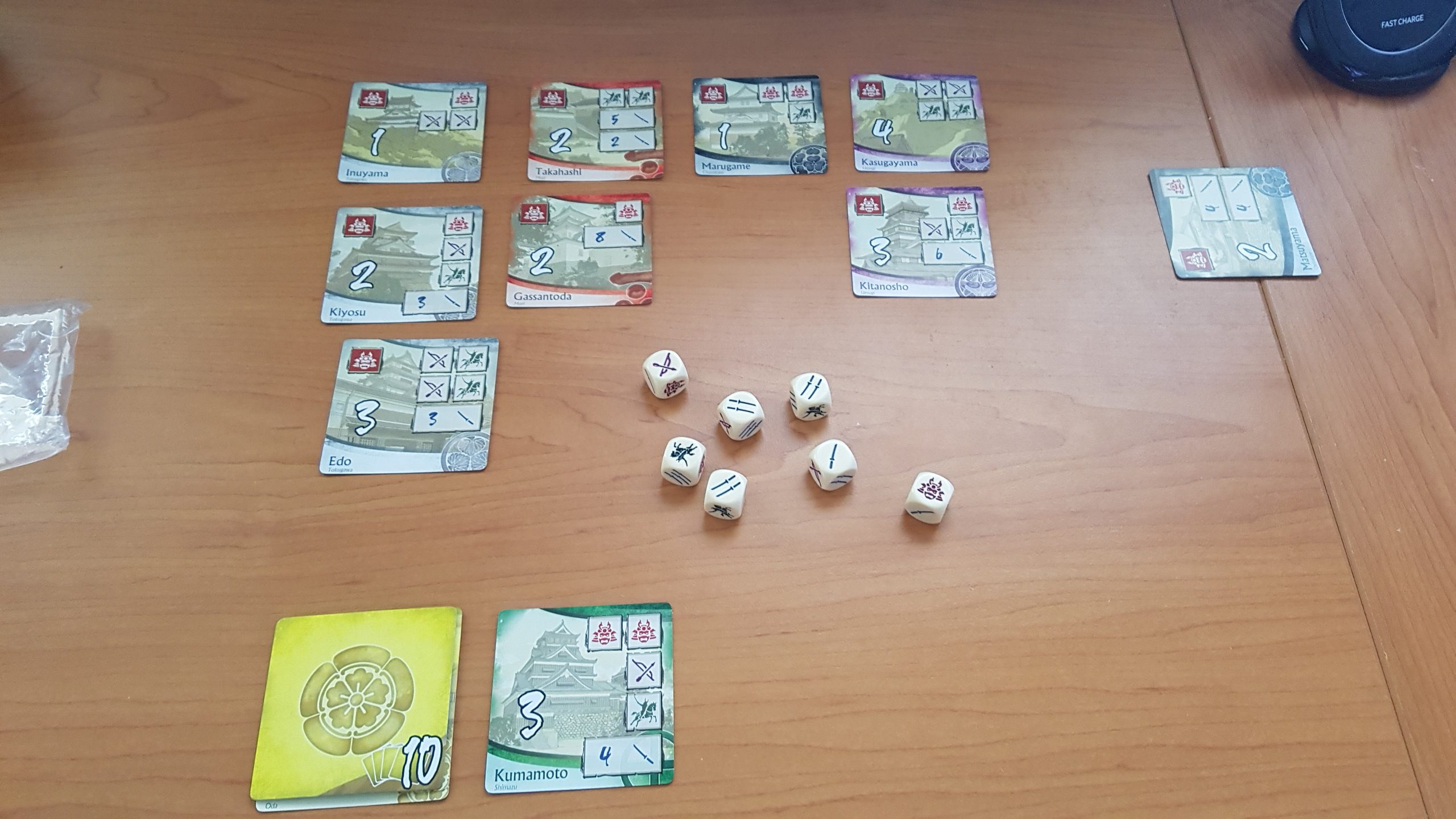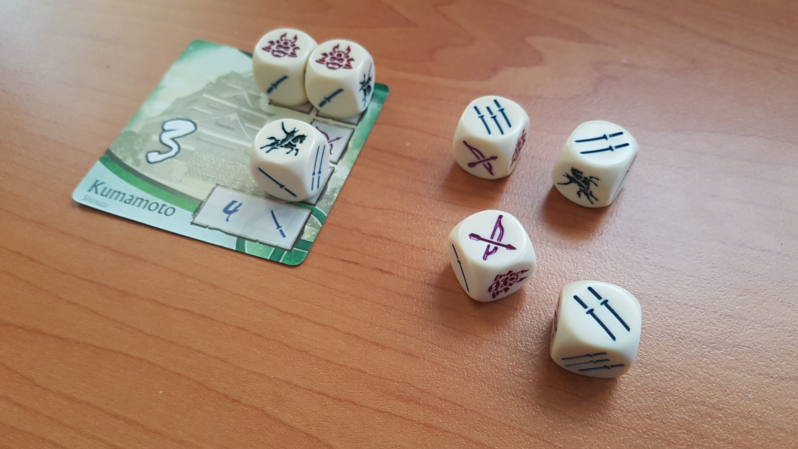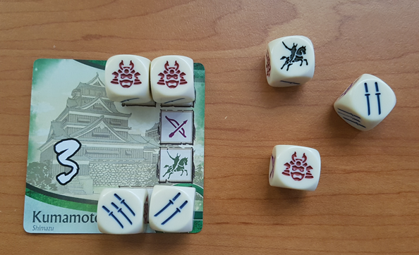 Age of War is a fast-paced dice game for two to six players, designed by Reiner Knizia and set among the warring states of feudal Japan. In the game, you and your fellow players take on the roles of rival daimyos attempting to unite the Japanese clans by mustering your troops and conquering castles.
