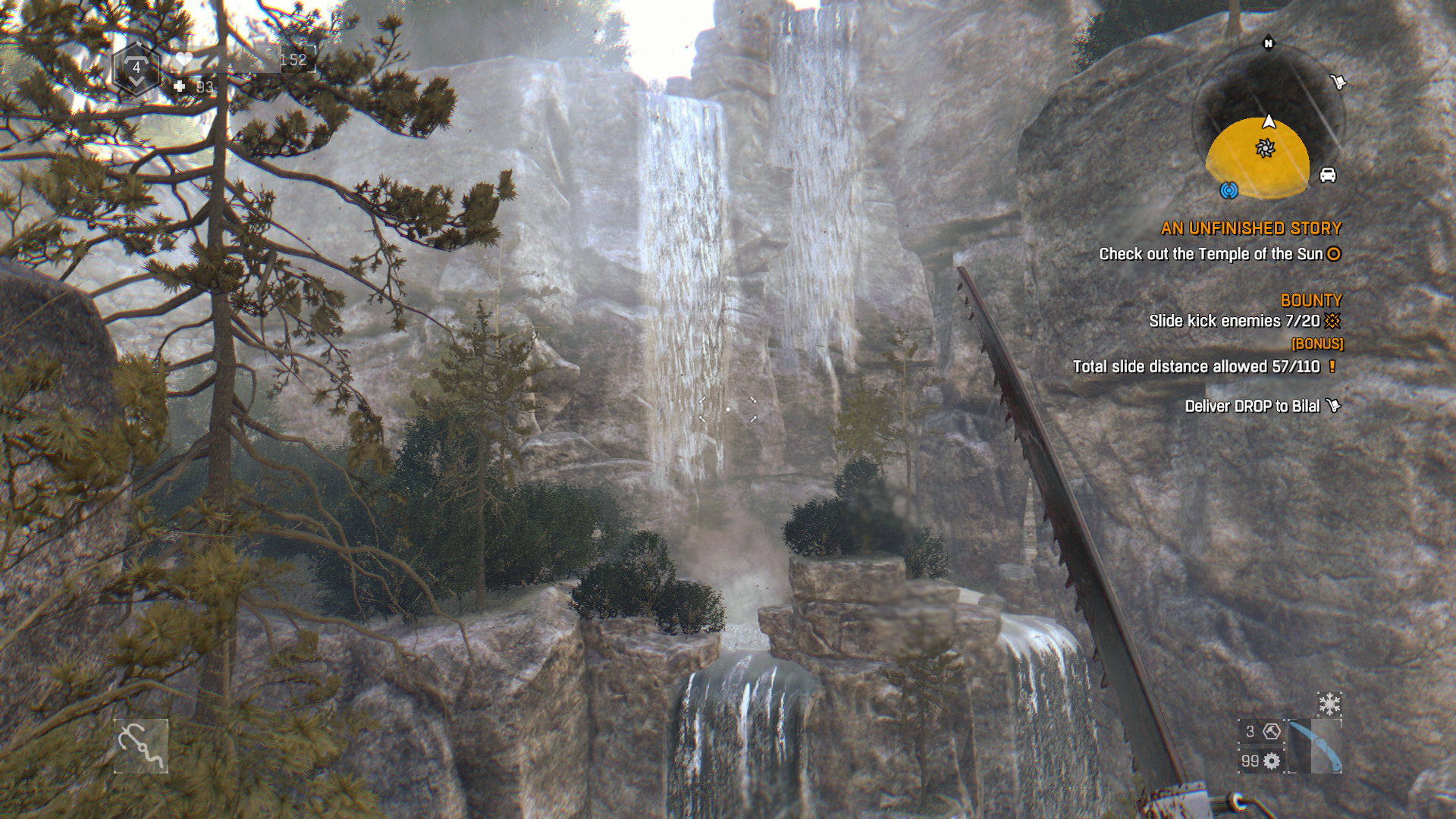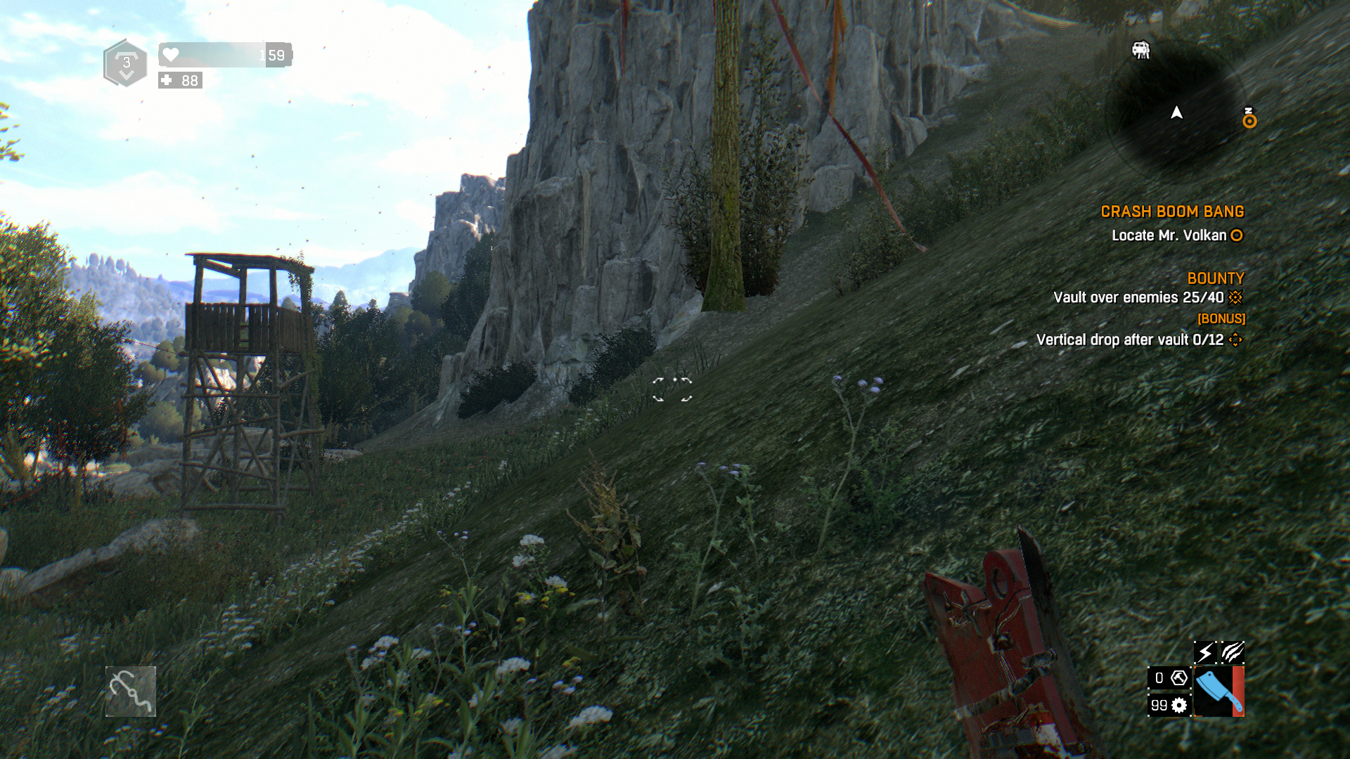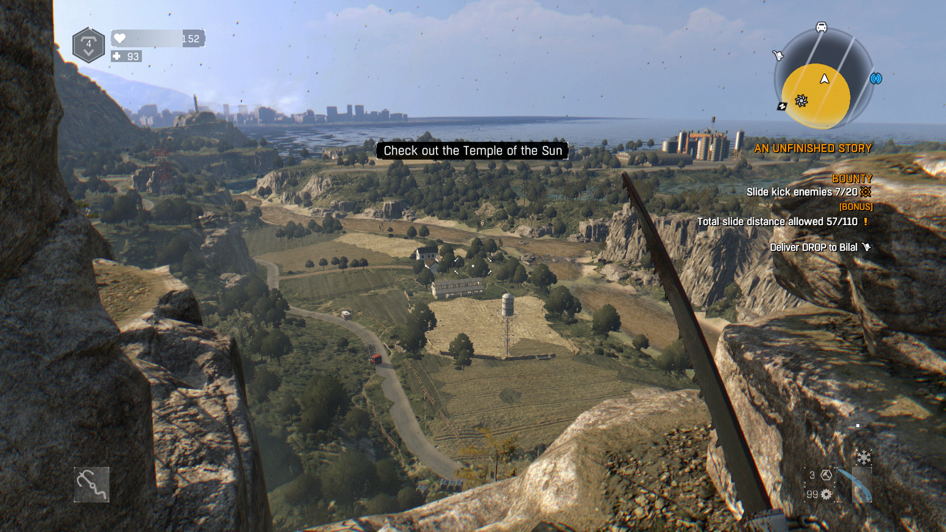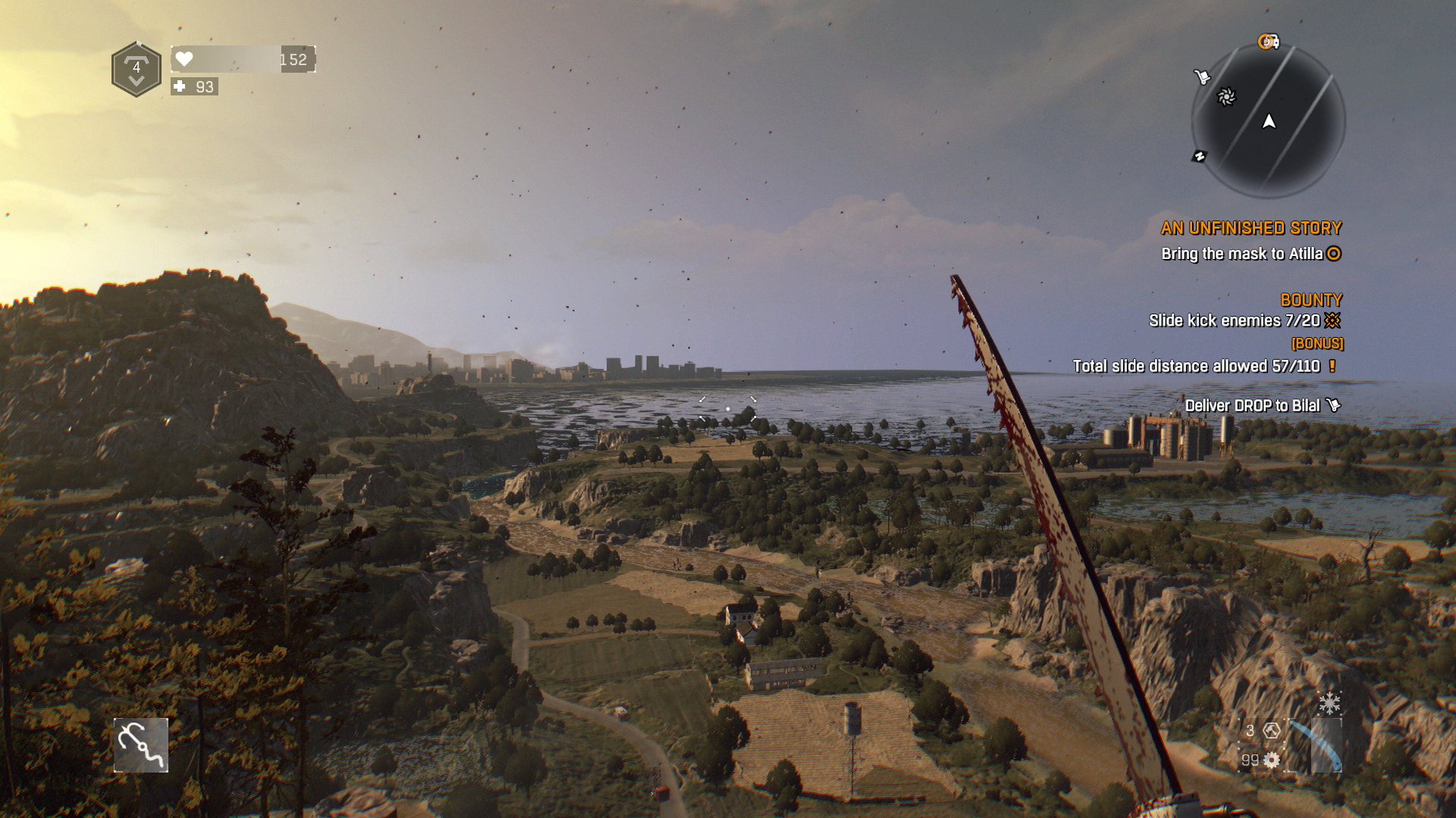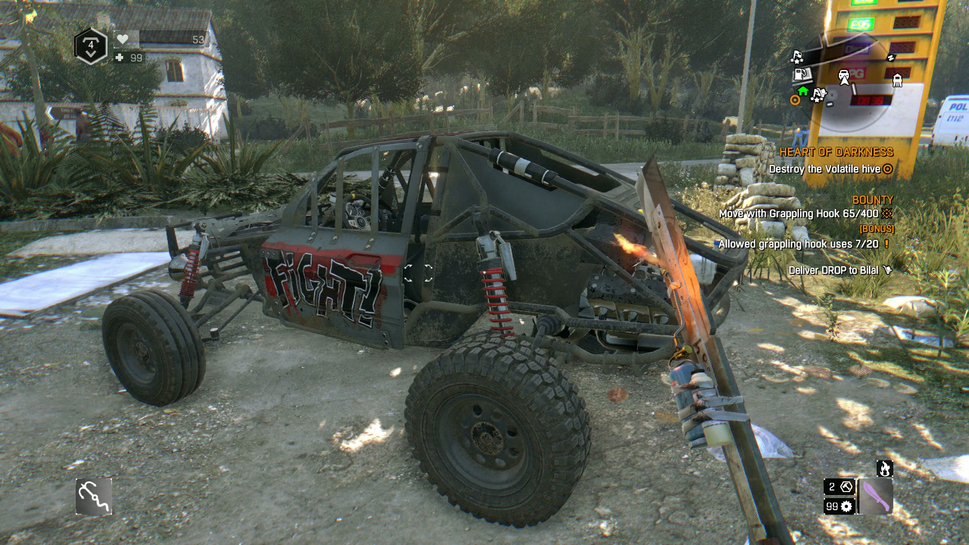 Dying Light: The Following is an expansion pack for Dying Light. It follows Kyle Crane, who must venture into the countryside of Harran to investigate a mysterious cult whose leader may hold the key to immunity to a zombie virus that plagues the city. The game introduces a large, sprawling rural environment that is two times larger than the map of the base game. While the gameplay continues to focus on parkour, it has a larger emphasis on using firearms to defeat enemies, and the game introduces a dune buggy for both traversal and combat. Players can access this expansion after completing the prologue of the base game.