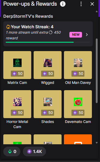 So what can you use this XP for? New swords? Armor? Psychological therapy for the streams you’ve had to endure? Well… not quite. But you can choose from some fun rewards by clicking the XP icon at the bottom of the Twitch Chat window.