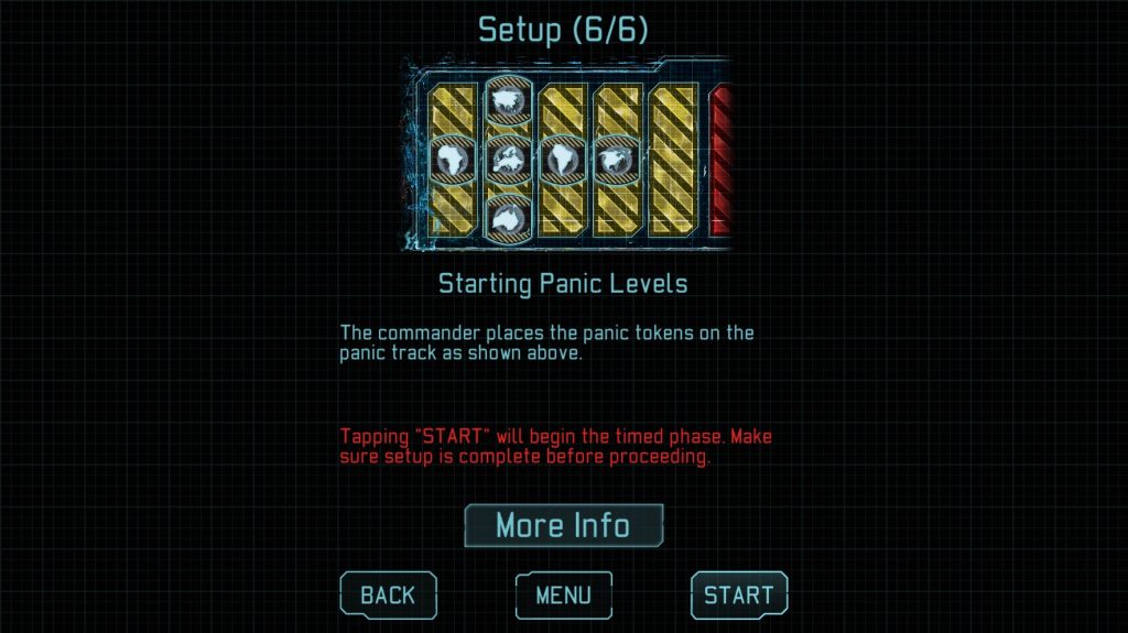The four roles available to players are Commander, Chief Scientist, Central Officer and Squad Leader. Each role has specific responsibilities and a distinct set of assets with which to deal with them. The easiest role is probably the chief scientist as there’s almost no impact if you fail at your task, and not  many decisions to make. The Central Officer is fun as there’s low impact for failure but you get to control the app and inform players of the current tasks. The Commander is responsible for aerial defence and the budget – two important factors in determining panic levels. The most difficult role, however, would be the Squad Leader. The Squad Leader is responsible for troop management, base defence and mission completion. Troop combat has an added level of complexity not present in other roles and, considering base destruction is a quick way to lose the game, has added pressure not to make mistakes. While not entirely balanced the mix of roles allows for better teamwork as some roles can concentrate on specific tasks while others manage the “big picture” stuff.
